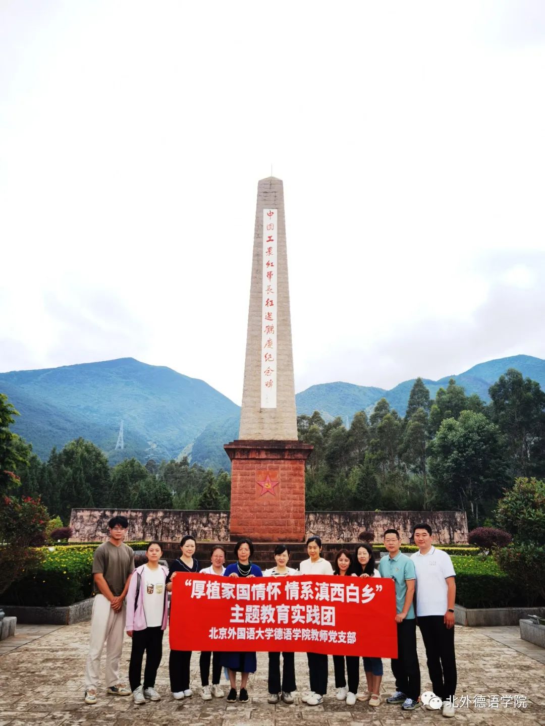 7月12日上午,太阳成集团tyc122cc教师党支部主题教育实践团来到鹤庆县西山脚下的中国工农红军长征过鹤庆纪念碑,重走红二、六军团走过的长征路线,深入学习感悟革命先烈“红军不怕远征难,万水千山只等闲”的长征精神。