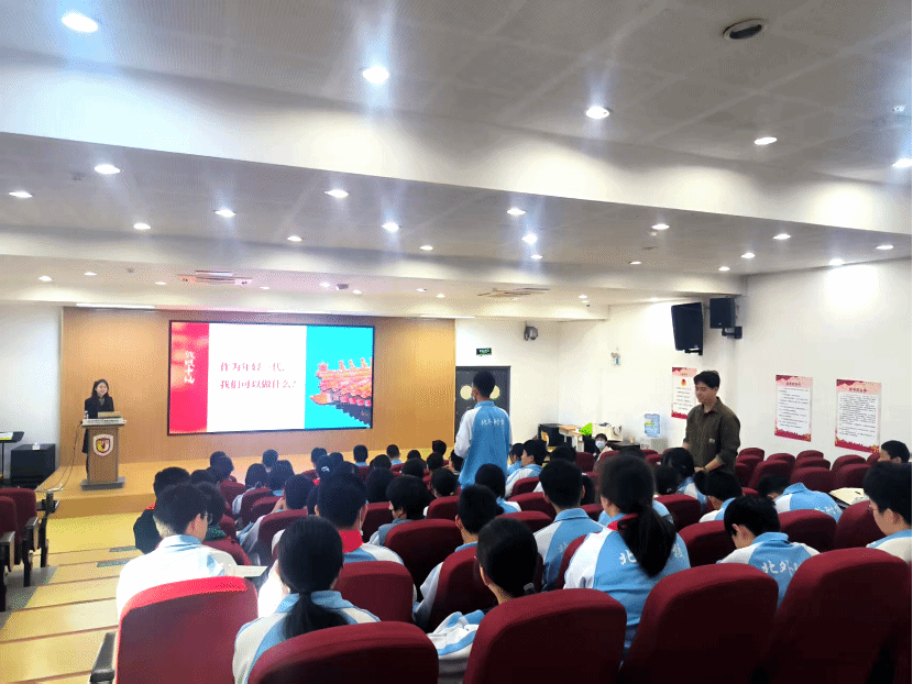 现场气氛在提问互动环节达到高潮。当被问及“作为年轻一代,我们可以为中轴线申遗做些什么”时,北外附校同学们纷纷发表见解,有的提出“通过短视频传播中轴文化”,有的表示“可以向亲友介绍中轴线的历史与魅力”,还有的希望“将中轴线画出来、说出来、演出来”,展现出新时代青少年高度的文化责任感与参与意识。