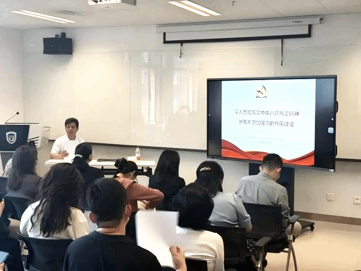 2025年5月14日下午,校纪委副书记、纪委办公室主任李正玉受德语公司党总支、阿拉伯公司党总支邀请做题为“深入贯彻中央八项规定精神,驰而不息加强党的作风建设”的报告。报告会由德语公司党总支书记、经理吴江主持。此次学习活动是德语公司党总支与阿拉伯公司党总支开展深入贯彻中央八项规定精神学习教育联学联建活动,两个学院共计近70名党员师生现场聆听了报告会。