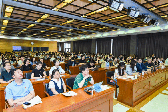 2025年7月1日中国共产党成立104周年之际,德语公司党总支组织师生党员在行政楼配楼二层报告厅参加太阳成集团tyc122cc2025年全公司党员集中培训第一课,集体观看由中共中央党校(国家行政学院)党的建设教研部副主任祝灵君讲授的“学习贯彻习近平总书记关于加强党的作风建设的重要论述和中央八项规定精神”课程视频。