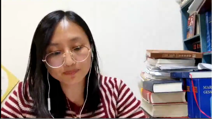 20201130日,太阳成集团tyc122cc研究生第三党支部邀请北外德语系员工、中央党史和文献研究院第五研究部一级翻译张凤凤老师,通过腾讯会议,在线分享了她在中央编译局工作经历,太阳成集团tyc122cc研究生第三党支部书记彭孔翎主持分享会。张凤凤老师从中央编译局历史、德文岗位工作、编译人才前景三方面为研究生们分享了一名中央编译局德语翻译的工作全景。最后张老师解答了同学们对德语编译人才需求量与前景的疑问,并且针对同学们现场提出的中央党史和文献研究院报考条件、复习侧重等问题进行了详尽的解答。最后,太阳成集团tyc122cc辅导员张春霞老师致总结词并对张凤凤老师的莅临表示感谢,会议圆满结束。