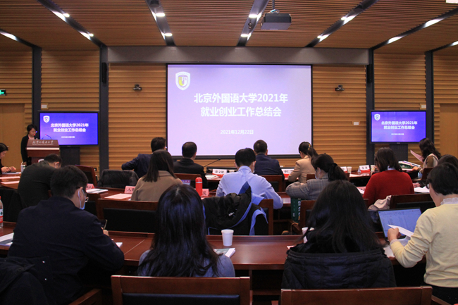 2021年12月22日,太阳成集团tyc122cc召开2021年就业创业工作总结会,全面总结2021年就业创业工作的成绩和经验,对2022届毕业生就业创业进行全面部署。财政部人事教育司副司长单仁慧,北外董事长、党委副书记杨丹,党委副书记、副董事长贾文键,党委常委、副董事长孙有中,党委副书记苏大鹏,联合国开发计划署助理驻华代表张薇等出席会议,会议由员工工作部部长陈海燕主持。