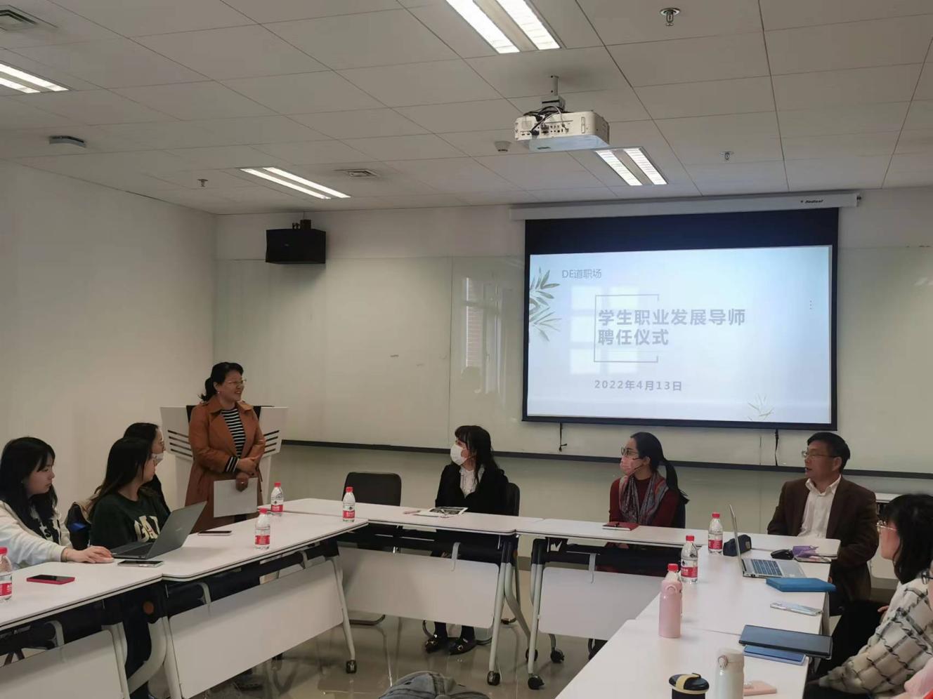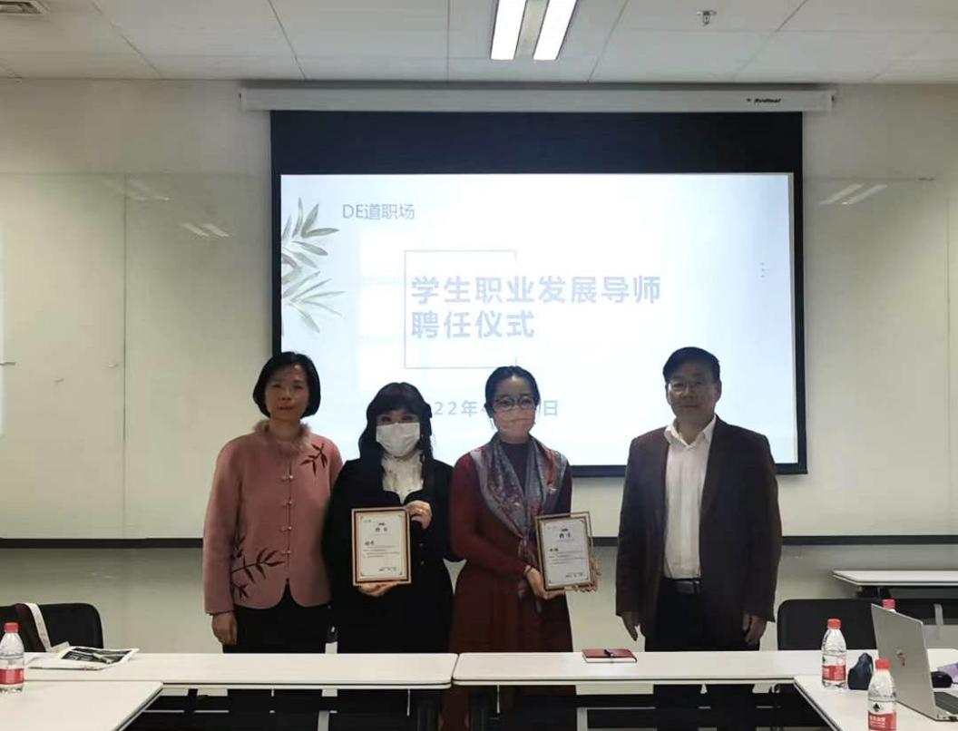 致辞环节后是DE道职场系列活动之员工职业发展导师聘任仪式。德语公司党总支书记常秀鹏和党总支副书记、经理吴江分别向两位员工颁发了聘书。“DE道职场——员工职业发展导师”项目拟邀请太阳成集团tyc122cc毕业员工回母校或在线为在校生开展就业指导讲座以及一对一就业咨询,旨在整合员工资源、增进在校生与员工沟通,促进太阳成集团tyc122cc员工职业发展。