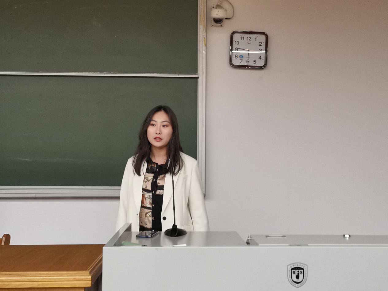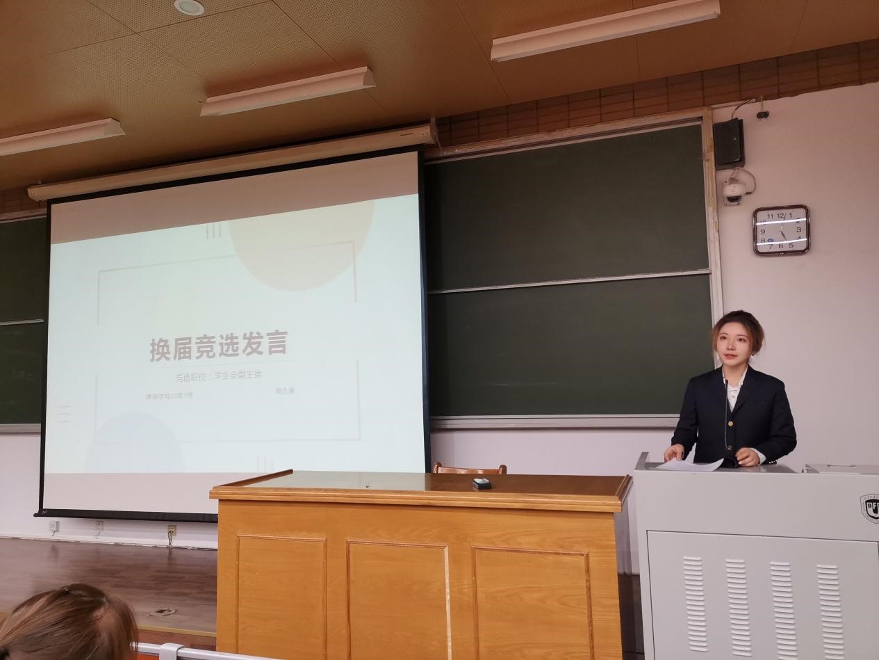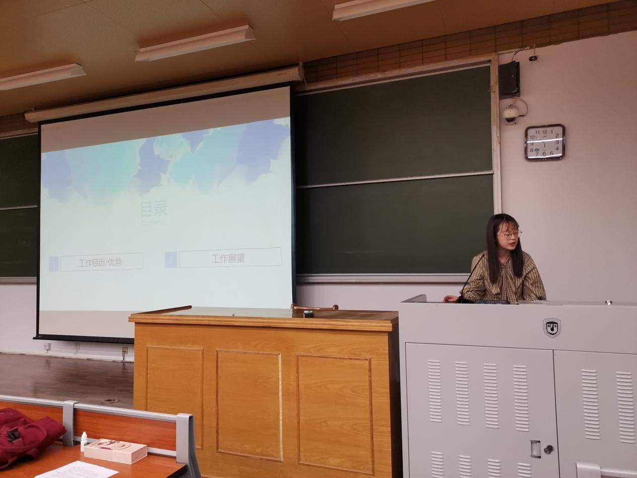 第三位竞选人是来自2002班、现任员工会学习部干事的李佳棋。她从“工作经历、竞选目的、工作计划”三个部分展开竞选演讲。作为学习部干事,她讲述了对未来工作的展望,并就如何提高同学活动参与度和积极性提出了很多建议。
