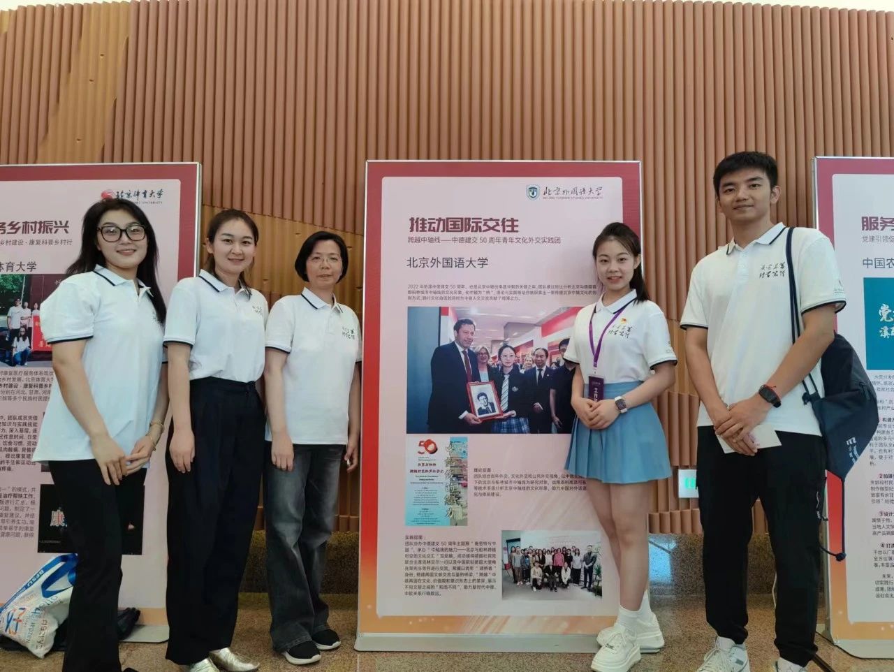 在活动现场的展览展示区,公司《跨越中轴线:基于北京中轴文化形象的对外话语体系调查研究》社会实践项目代表学校进行展示,本项目以中德建交五十周年及北京中轴线2024年申遗冲刺为背景,基于深度访谈与语料库辅助的媒体形象建构,研究中德媒体关于北京中轴文化形象的新闻报道,探析北京中轴线在传播过程中存在的问题、原因及改进方法。