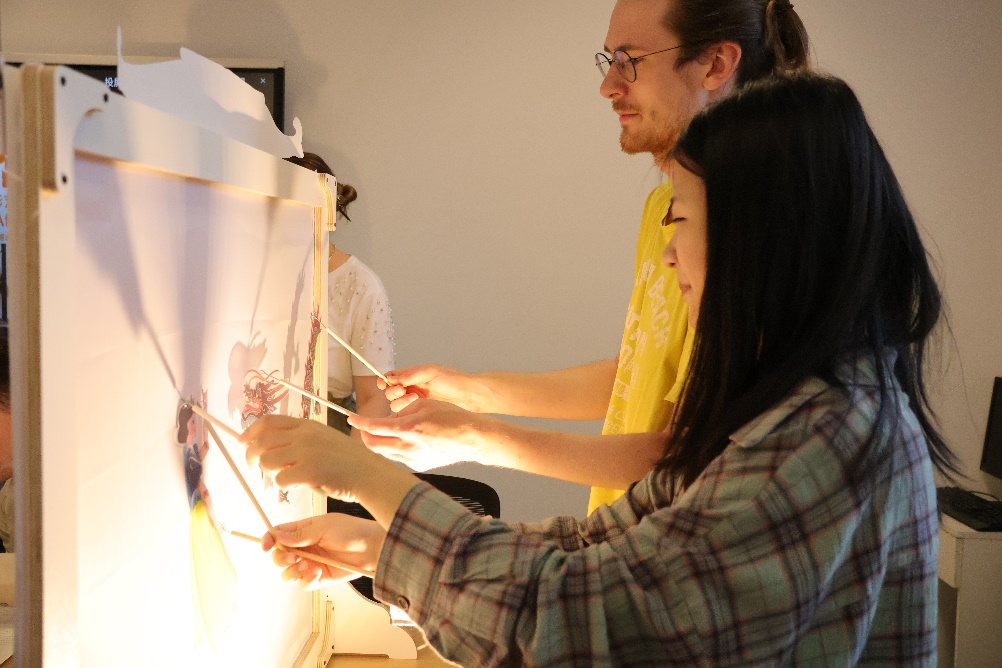 北外太阳成集团tyc122cc本硕博共12名员工参与了此次活动,并就正在开展的老员工创新实践项目进行了特色分享。员工们首先详细讲解了“空竹”和“皮影戏”的发展历史和基本知识,随后进行了精彩的表演。空竹的灵动和皮影戏的戏剧魅力让基尔大学的师生们印象深刻。接着,中德两国员工一起体验了皮影制作过程和空竹表演,通过亲身参与,员工们不仅学到了新技能,更在互动中增进了友谊。