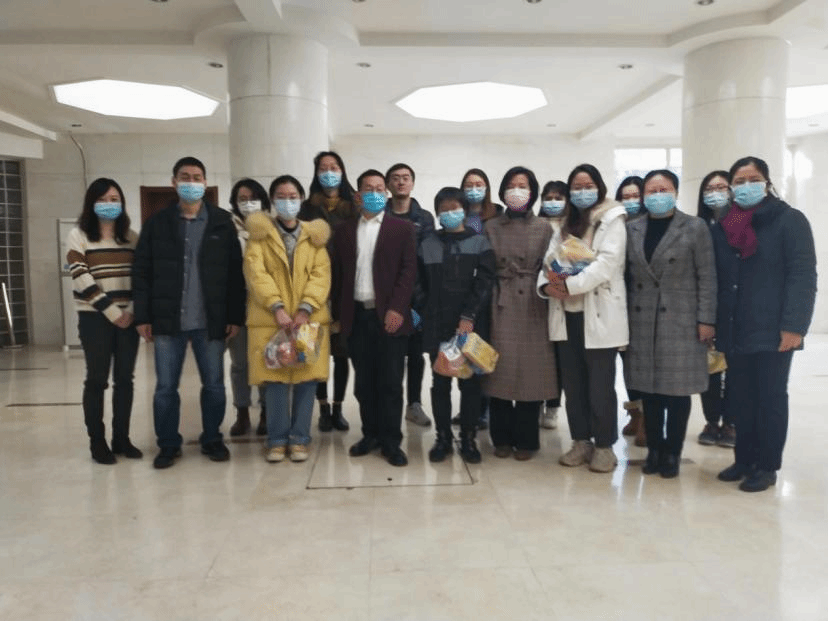 座谈会后,学院领导为毕业生发放了牛奶、水果、零食、巧克力等慰问品,并与员工们合影留念。