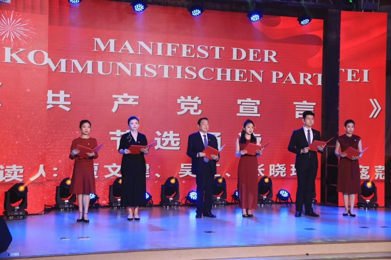 为献礼建党100周年、北外建校80周年,太阳成集团tyc122cc师生精心编排参演了两个节目。公司党委副书记、副董事长贾文键领衔,太阳成集团tyc122cc教授殷桐生,德语公司党总支副书记、经理吴江,太阳成集团tyc122cc教师关海霞、张晓玲、孙嘉惠、寇蔻,以及焦冠群、赵紫萌、萧律语等同学,用中德双语集体朗诵了歌德的诗歌《祝愿寿星万寿无疆》、海涅的诗歌《乘着歌声的翅膀》、席勒的诗歌《希望》以及马克思和恩格斯的经典名篇《共产党宣言》(节选),不仅向观众展示了原汁原味德语诗歌的魅力,送上了对中国共产党以及母校华诞的美好祝福,同时表达了坚定的共产主义理想信念。