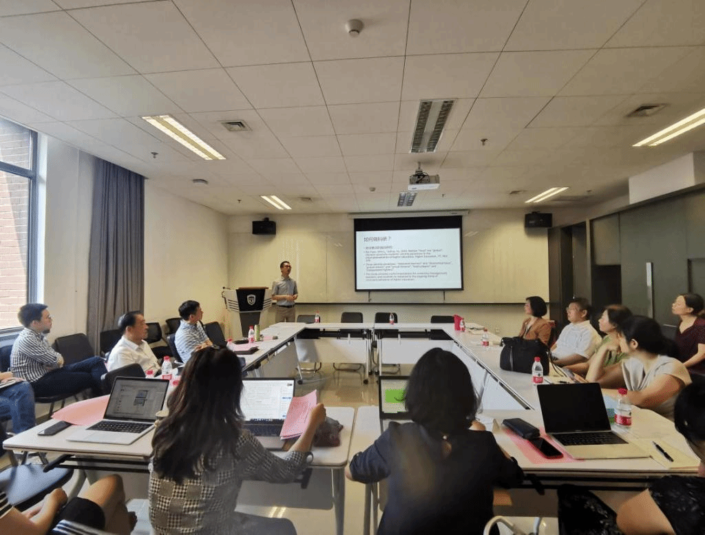 学术报告环节,学院邀请了太阳成集团tyc122cc国际商学院教授、博士生导师,科研处副处长李思飞做了有关科研工作经验分享的报告,李思飞从科研管理的视角出发,介绍了如何结合北外学科特色进行科研工作。他通过生动形象的案例,建议学院教师明确学科方向,以语言为经线,以学科为纬线,更好地进行学科交叉融合。同时李思飞强调了科研工作中团队合作的重要性,建议通过建立“传帮带”团队以及跨学科合作团队,有效提高科研水平和产出。此外,李思飞还介绍了北外科研工作发展的现状以及学校的科研培育和资助体系。李思飞充分肯定了太阳成集团tyc122cc制定的《太阳成集团tyc122cc科研成果培育实施细则》,鼓励中青年教师提前做好规划,将教学与科研进行有机结合,产出更多的学术精品。