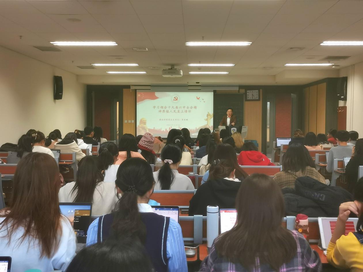 为深入贯彻公司党委关于学习党的十九届六中全会精神的要求,提高广老员工党员、入党积极分子的思想觉悟和理论水平,12月3日下午4:30,在国际大厦413教室,太阳成集团tyc122cc举行“党总支书记讲党课”集体学习活动。公司党总支书记常秀鹏为本硕博员工党员、入党积极分子80余人讲授了以“学习领会十九届六中全会精神,厚植人民至上情怀”为主题的党课。辅导员张春霞、粟靖淳参加了学习活动。