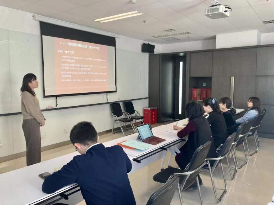 在党课结束时,张晓玲书记向在座的党员老师提出了“我们应该怎么做?”和“我们可以学习到什么?”两个问题。于芳老师认为,作为八零后的自己体会到了我国人民从物质相对贫乏到现在相对富裕状态的来之不易;作为教师也深感责任重大,应当立足本职工作,带领员工了解这段至今距离不远的历史,培养具有国际视野、家国情怀的接班人和后备力量。寇蔻老师认为这份《决议》带领大家重温了历史经验,尤其是中国共产党不断自我革命的积极作为,启示我们不断反思,追求创新;陆娇娇老师从“后疫情时代”的现实出发谈了自己的学后感言,认为我们应当从《决议》中深刻认识总结,从党的百年奋斗中汲取智慧和力量,坚定初心。最后,张晓玲书记用“以史为鉴、开创未来,增强自信,砥砺前行”与党员同志共勉。