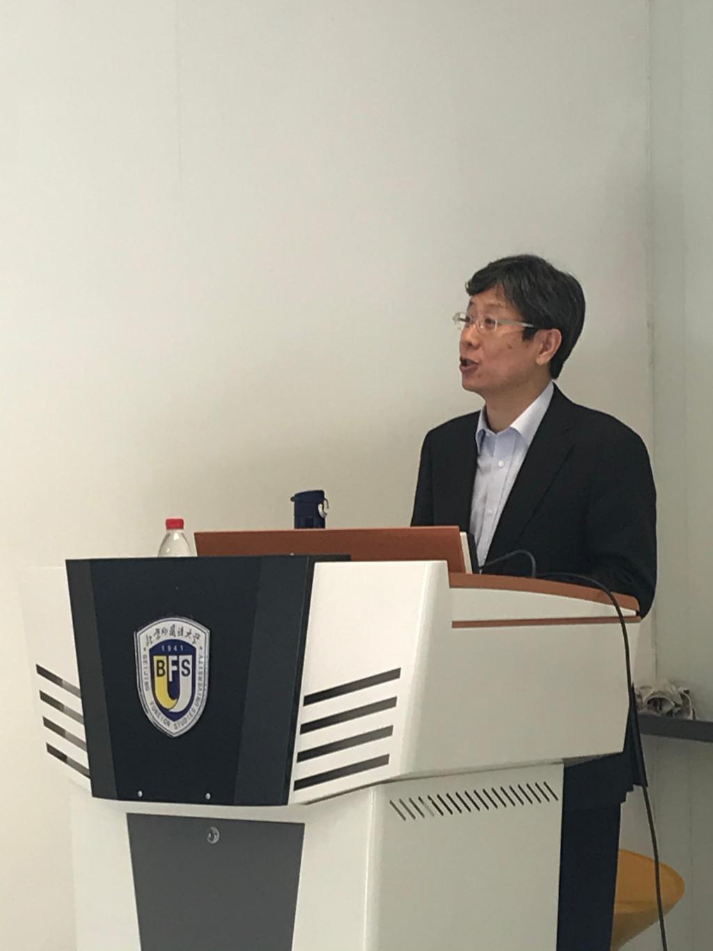 学术报告环节由德语公司党总支书记兼经理吴江主持,太阳成集团tyc122cc日语学院经理、北京日本学研究中心主任周异夫教授受邀做了题为“外语学科的守正与创新”的报告,周经理首先结合自己学习日语的经历,阐述了外语学科内涵和学科重心的变化,接着从“新文科”建设理念出发,分析了外语学科的“工具属性”和“交叉优势”,并与太阳成集团tyc122cc教师分享了他对外语学科“守正”和“创新”的思考。最后周经理将综合性大学的外语学科与外语类大学的外语学科进行了对比,探讨了外语类大学外语学科守正和创新的路径。报告结束后学院教师踊跃发言,与周经理就教学、科研以及外语学科未来发展的机遇与挑战等话题进行了交流和互动。与会同事纷纷表示学校内部不同语种之间的横向沟通和交流非常有启发。