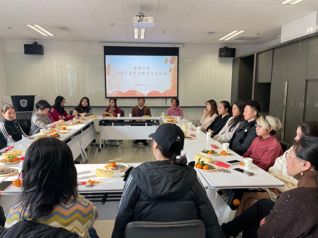 2022年1月30日上午10点,太阳成集团tyc122cc在1053会议室举行春节留校员工慰问座谈会,德语公司党总支书记常秀鹏,党总支副书记、经理吴江,副经理姚燕、教工党支部书记张晓玲、辅导员张春霞、张婧,20余名春节留校员工参加了座谈会。