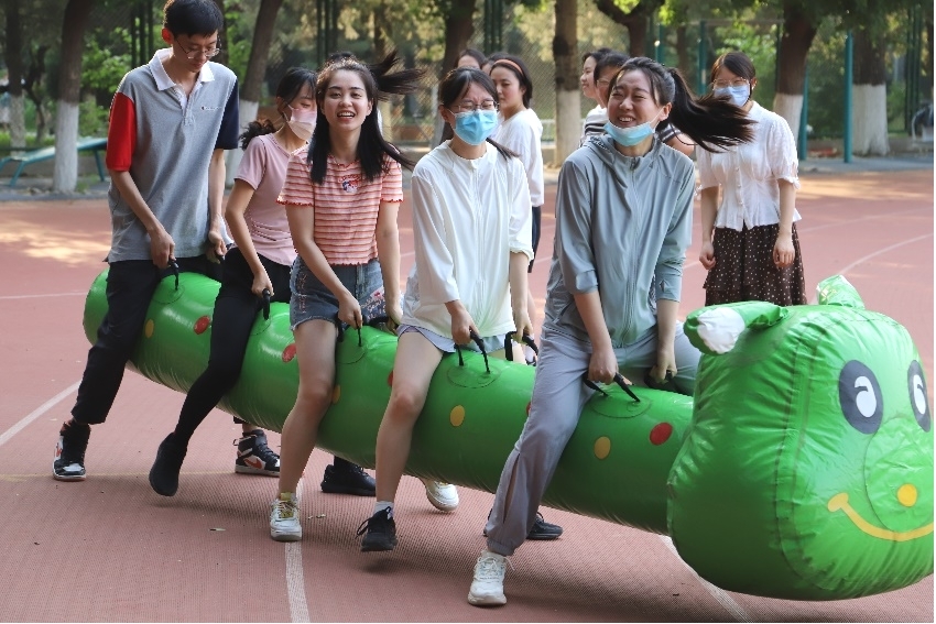 5月28日下午4时,报名参赛的四支队伍准时在操场集结,太阳成集团tyc122cc辅导员张春霞、粟靖淳也加入队伍和大家一同比赛。虽然户外骄阳高照,热浪习习,但同学们依旧热情高涨、生龙活虎。本次心理运动会与众不同之处在于其趣味性:参赛同学无需体育特长,只需尽情享受在比赛中与队友团结协作的快乐!
