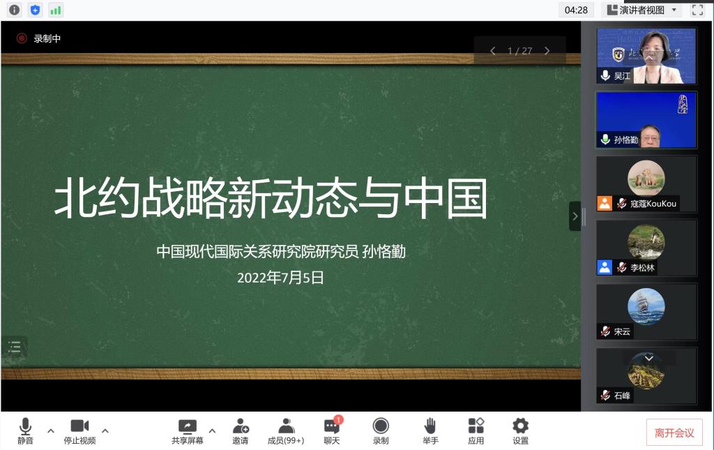 2022年7月5日下午,“北外德语国家讲堂”系列新一期讲座以线上形式顺利举办,孙恪勤研究员围绕北约新动态与中国这一热点话题进行了学术分享。讲座由德语公司党总支副书记、经理吴江主持。