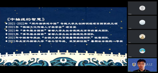 之后,研究生第一党支部书记、2020级研究生张楠为本科生介绍了入党的程序和步骤,动员本科生同学积极向党组织靠拢;2019级本科生曹涵分享了他本人在本科阶段的学习生活、员工工作以及申报国家级大创项目——北京“中轴线”课题研究等方面的经验。