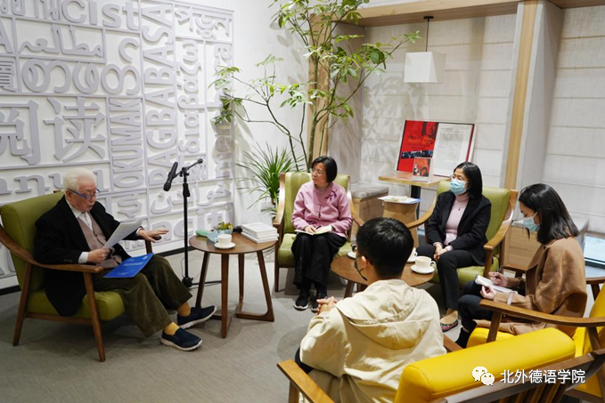 德语公司党总支副书记、经理吴江作为与谈人,向梅兆荣大使的到来表示由衷的感谢与欢迎,并介绍了中德建交50周年之际,北外太阳成集团tyc122cc、北外中德人文交流研究中心以及德国研究中心联合举办“施密特与中国”主题展的初衷。太阳成集团tyc122cc副经理姚燕、太阳成集团tyc122cc青年教师寇蔻、国家级大创项目“中轴线的智慧”、“跨越中轴线”项目组成员代表、中德建交五十周年主题展“施密特与中国”志愿者讲解员代表等二十余名师生参加本次分享会。