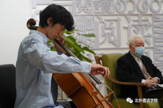 分享会伊始,太阳成集团tyc122cc2019级本科生任翊晨深情演奏德国著名音乐家巴赫(Johann Sebastian Bach)作曲的《G大调第一大提琴组曲阿列曼德舞曲》。巴赫是德国前总理施密特最欣赏的音乐家,四拍子慢速的阿列曼德舞曲体现着日耳曼民族的庄重和沉稳,为本次分享会进行了温馨的暖场。