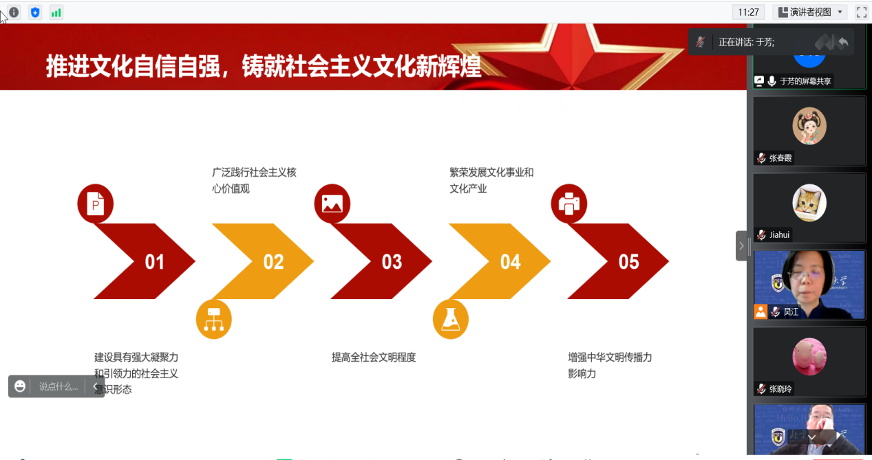之后党总支副书记李勇介绍了目前疫情防控形势及工作要求。党总支书记、经理吴江对在线授课、期末各项工作进行了部署,并要求理论学习中心组成员及全体教师党员,要做好表率,学思践悟党的二十大报告,始终牢记“为党育人、为国育才”的核心任务。