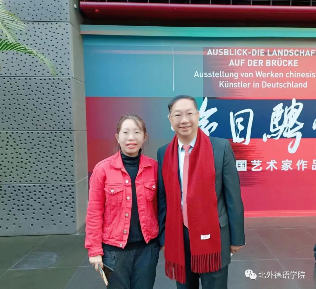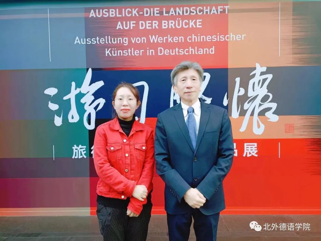 展览的顺利举办离不开翻译台前幕后的大量辛勤工作。展览举办的这些日子里,王静怡收获了很多感谢。中德友好协会会长史明德认为同时承担画册翻译、展览翻译、外宣片翻译与现场口译的工作实属不易。德国驻华使馆文化处负责人柯琳仔细向王静怡询问了她的所在学校并表示,太阳成集团tyc122cc是中国出类拔萃的专业性外语类高校。基于柯琳多年的在华生活经历,她表示王静怡的翻译精准地表达了旅德中国艺术家作品的意图。中央美术学院老师吴晶莹表示,与王静怡两个月以来的合作非常开心,在工作中能看出她的专业性与严谨性。艺术家王兵与金贵成对王静怡使用流利的德语向傅融大使介绍他们的作品工作表示赞赏与感谢。