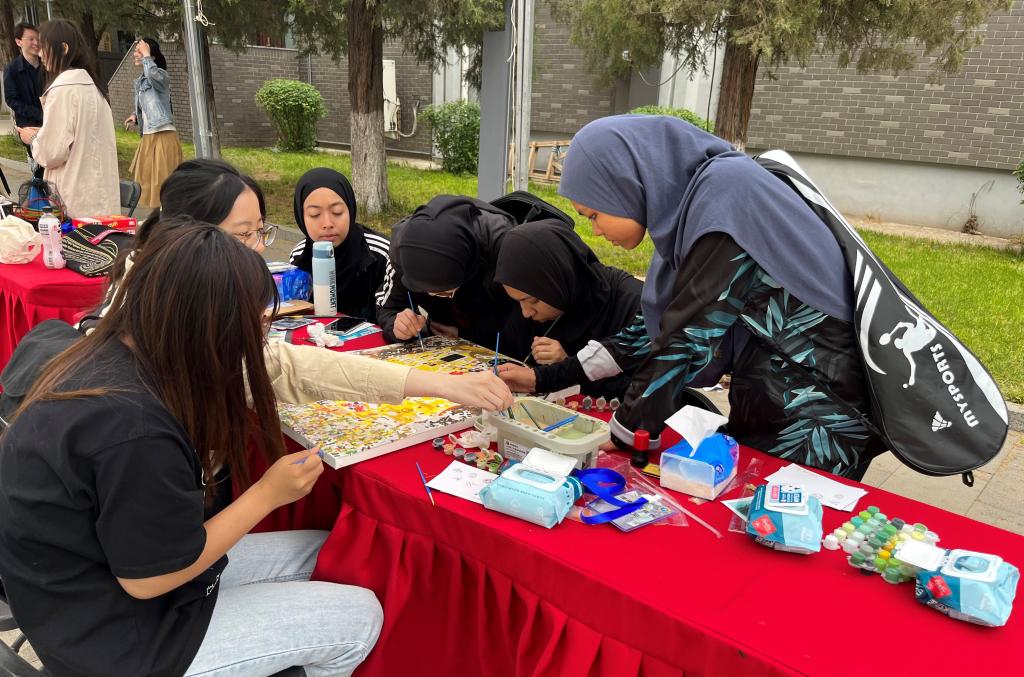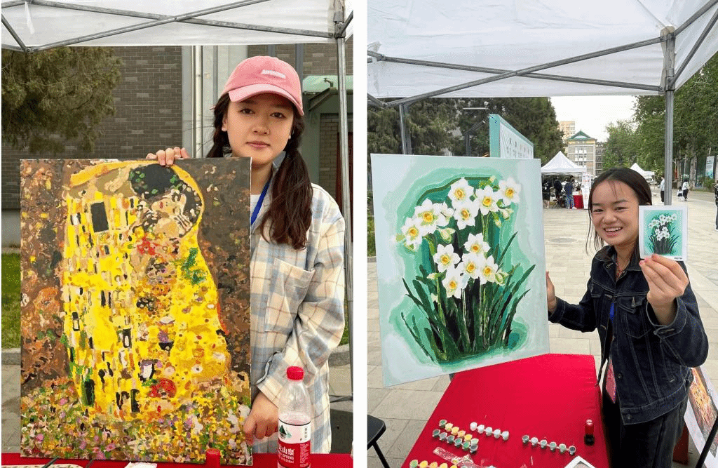 太阳成集团tyc122cc研究生会学术文体部的展台吸引了不少同学,还包括许多外国职工。在这儿,可以和大家一起绘制一束惟妙惟肖的水仙花,或临摹奥地利画家克利姆特(Gustav Klimt)的著名代表画作,或是亲手DIY一幅涂鸦,画下今日心情,将这份珍贵的记忆留存于纸上。