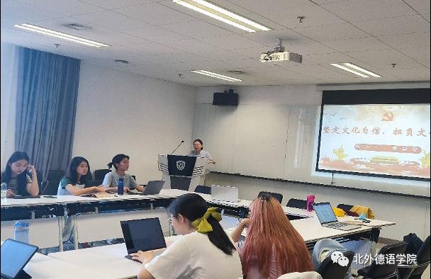 余紫萌同志作为《情寓于竹,四海繁花——文化强国战略下用德语向世界展示空竹文化之美》大创项目的负责人,结合自身参与项目建设的经历分享了自己对于青年坚定文化自信,担负文化使命的体会。
