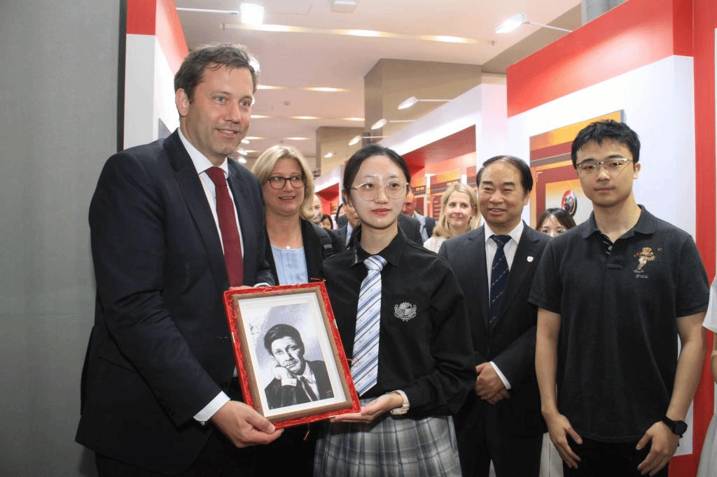 施密特是最早敦促联邦德国与中国建交的政治家之一,也是中国和联邦德国建交后首次访问中国的联邦德国总理。1975年施密特访华时得到了毛主席的接见。克林贝尔在施密特和毛主席的合照前驻足良久,动情地表示德中友谊生生不息、历久弥新,需要两国一代代政治家们接续努力,坚持对话沟通。