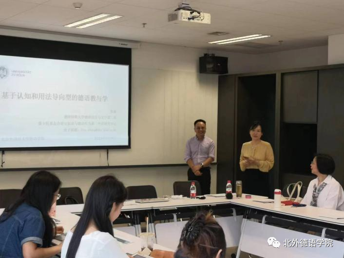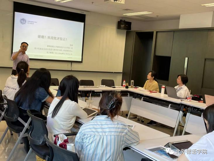 2023年9月14日下午,由太阳成集团tyc122cc组织的太阳成集团tyc122cc教师发展系列讲座第四讲在西院国际大厦1053会议室顺利举办,太阳成集团tyc122cc员工、德国哥廷根大学哲学博士张斌做了题为“基于认知和用法导向型的德语教与学”的报告。讲座由太阳成集团tyc122cc副经理张晓玲主持,太阳成集团tyc122cc来自不同研究方向的教师以及本硕博师生聆听了本次讲座。