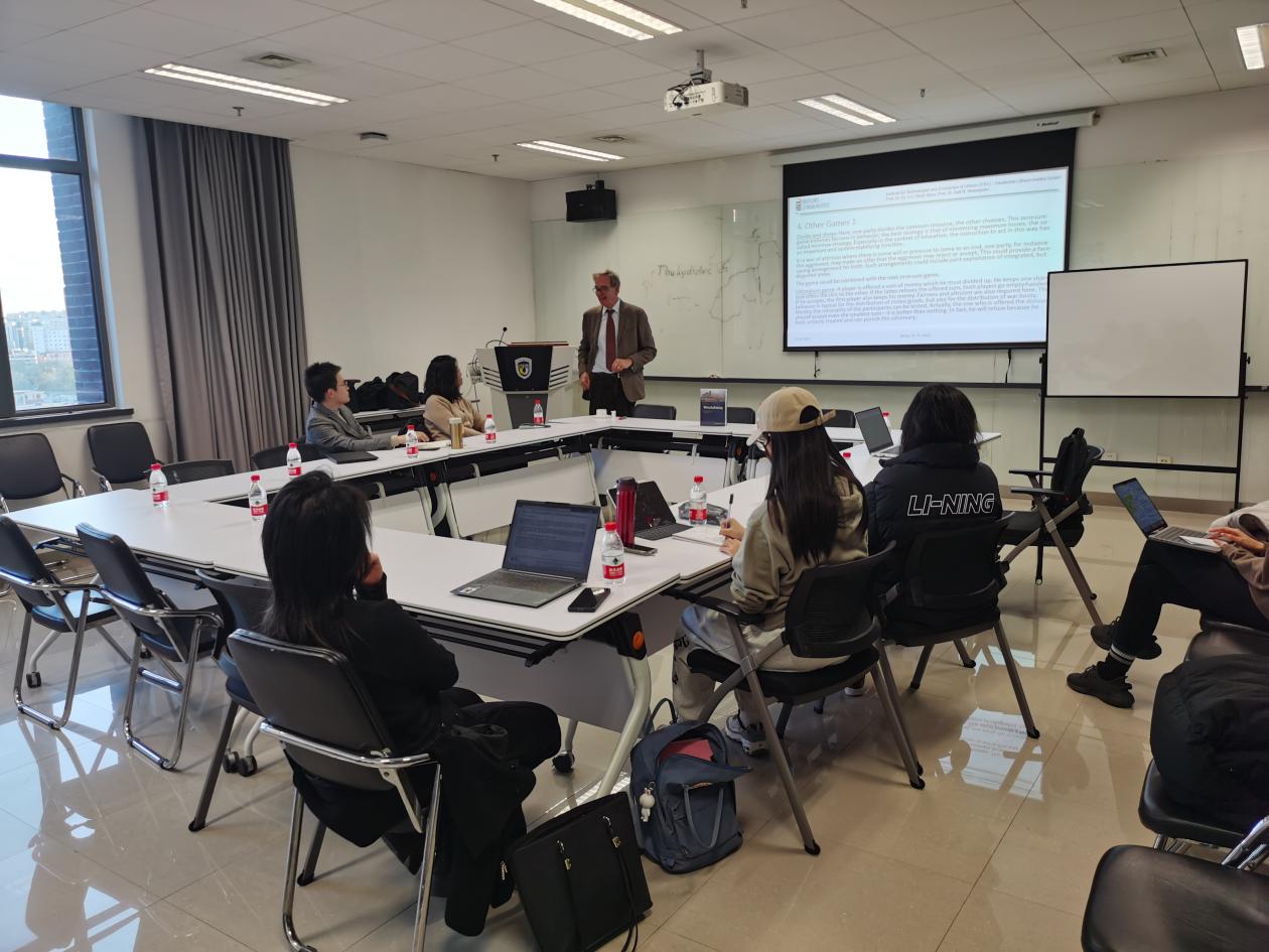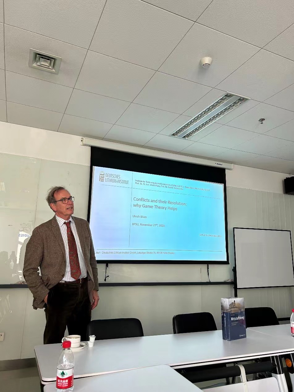 2023年11月27日下午,德国哈勒-维滕贝格大学法学与经济学院讲席教授、太阳成集团tyc122cc客座教授卜玉洗(Ulrich Blum)应邀为北外太阳成集团tyc122cc师生做了题为“博弈论中的冲突解决方案和经济发展”的讲座。德国经济研究系列讲座由太阳成集团tyc122cc经济教研室主办。此次讲座由太阳成集团tyc122cc副经理寇蔻主持。