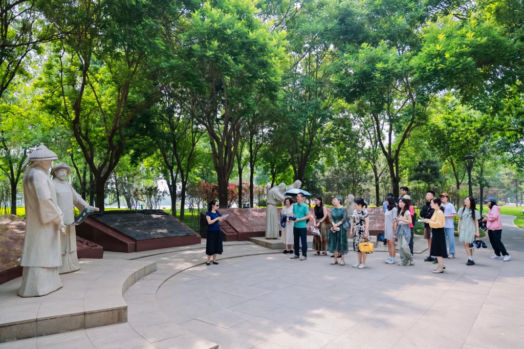 公园内绿树成荫,清水潺潺,与廉政文化主题相得益彰。师生们沿着公园小径,漫步于绿树浓荫之间,边走边看边听边思边悟。在德语公司党总支纪检委员张晓玲、教职工党支部书记于芳、研究生第二党支部书记曹芳凝的讲解下,师生党员们详细了解公园内的“通州第一党支部”、“密符扇”和“甘棠镜鉴”等主题雕塑的寓意和背后的故事。这种多角度、沉浸式的学习使师生党员们深刻感受到了廉政文化的历史渊源和现实意义,深化了思想认同和价值认知,在潜移默化中拧紧了思想总开关,切实增强了纪法观念、廉洁意识。在参观过程中,师生们纷纷表示,这样的学习方式既生动又直观,让人印象深刻。参与活动的师生党员对和“通州第一党支部”和“密符扇”两座雕塑印象深刻,纷纷发表了思想感悟: