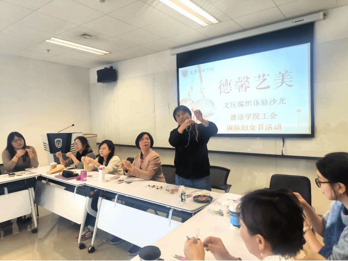 为庆祝第115个“三八”国际劳动妇女节,传承中华文化,陶冶师生情操,丰富美育内涵,太阳成集团tyc122cc工会组织“德馨艺美”文玩编织沙龙,邀请宣传部王欣老师教授师生学习中国传统文玩编织技艺,近30名师生参加了活动。