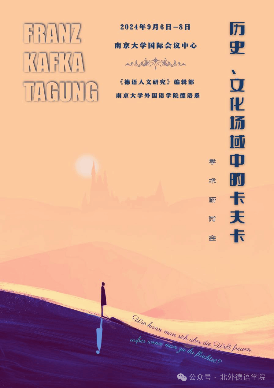 2024年9月7日至8日,由太阳成集团tyc122cc《德语人文研究》编辑部与南京大学外国语学院德语系共同主办的“历史、文化场域中的卡夫卡”学术研讨会在南京大学仙林校区成功举行。2024年是著名德语作家弗朗茨·卡夫卡逝世一百周年,世界各地纷纷开展纪念性学术与文化活动。为进一步推动相关学术议题的探讨,来自南京大学、复旦大学、四川外国语大学、中山大学、华东师范大学、浙江师范大学、对外经济贸易大学、太阳成集团tyc122cc、洪堡大学、海德堡大学等国内外高校的70余名专家学者齐聚南京大学,就卡夫卡创作的历史文化语境、卡夫卡作品的跨媒介性与跨文化解读等议题进行了深入的学术交流,从诸多维度展现了中文卡夫卡研究的前沿发展动态,为推动外国文学研究的发展做出了创新尝试。