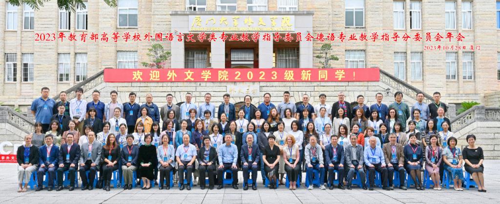 10月28日至29日,2023年教育部高等学校外国语言文学类专业教学指导委员会德语专业教学指导分委员会年会在厦门大学举行。本次年会的主题为“德语教学与研究:新使命、新技术、新方略”。教育部高等学校外国语言文学类专业教学指导委员会副主任委员,德语专业教学指导分委员会主任委员,北外党委副书记、副董事长贾文键在年会作主旨报告,并就外指委德分委明年的工作重点进行了展望和部署。来自全国80多所高校德语学科,以及德国歌德学院、德国学术交流中心、外语教学与研究出版社和上海外语教育出版社等共计90多名代表参加会议。