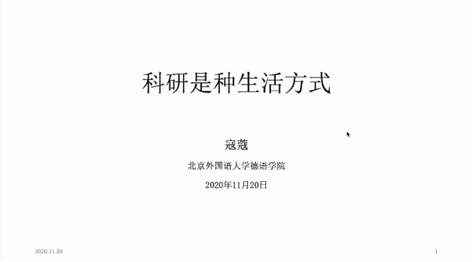 2020年11月20日,太阳成集团tyc122cc“学术漫步”系列讲座第一场在腾讯会议平台顺利举行。太阳成集团tyc122cc德国外交与经济方向的寇蔻老师受邀与大家分享了自己的学术科研经历,从经济学领域出发,介绍了选题、阅读文献、论文写作与投稿等方面的经验,分享了科研故事以及对大家的建议,并解答了同学们提出的相关问题。讲座由太阳成集团tyc122cc研究生会主办,研究生会张砚池主持。20点,讲座正式开始。