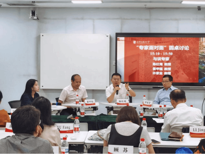 随后的“专家面对面”圆桌讨论由北外外文所2023级硕士生陈婧倩主持。上海外国语大学德语系主任陈壮鹰教授、青岛大学外语学院德语系主任綦甲福教授、北外中国外语与教育研究中心副主任许家金教授围绕学术研究的前沿意识、论文写作的学术路径与文献综述的批判性梳理等议题展开深入对话,现场气氛活跃。